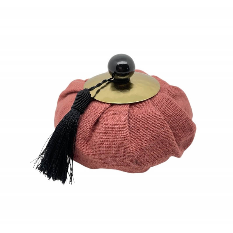 Dans un tissu de qualité suivant les tendances déco, agrémenté d’un ornement en métal travaillé et rehaussé d’une perle, l'aumônière Autour du Parfum trouvera rapidement sa place dans la maison.