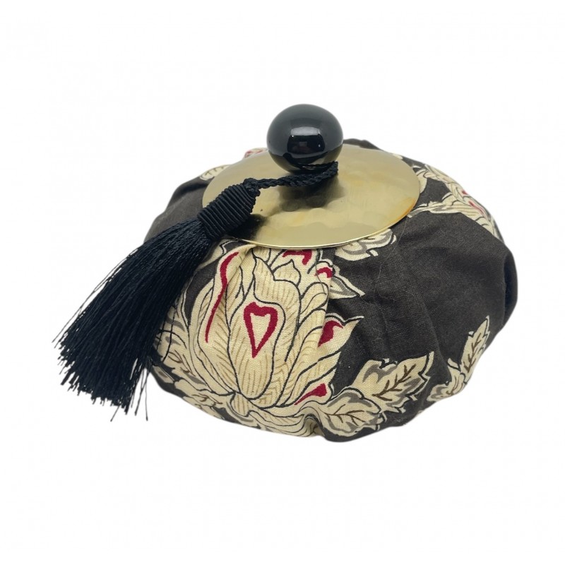 Dans un tissu de qualité suivant les tendances déco, agrémenté d’un ornement en métal travaillé et rehaussé d’une perle, l'aumônière Autour du Parfum trouvera rapidement sa place dans la maison.
