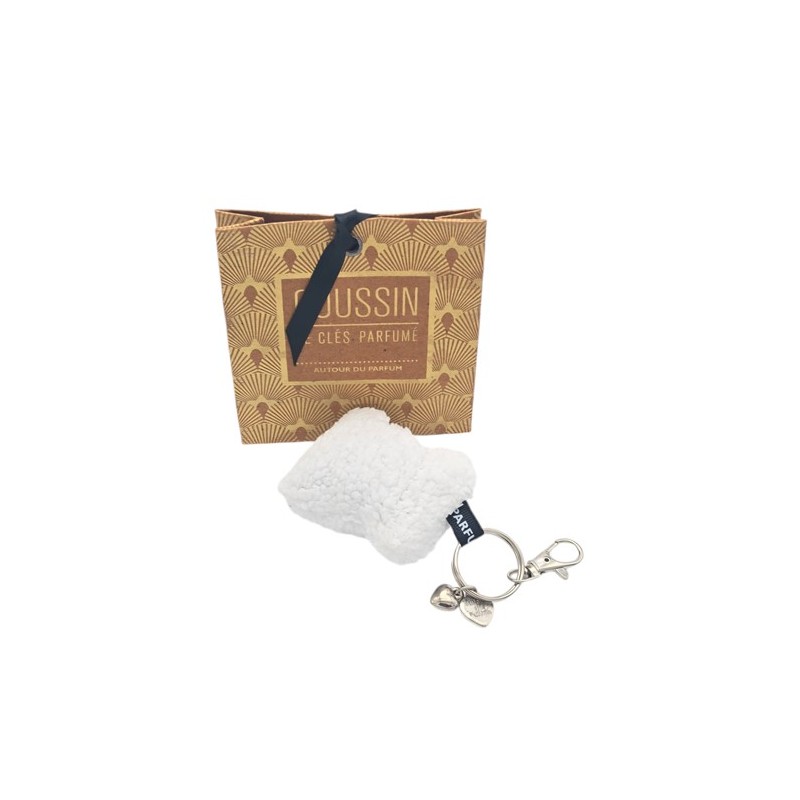 En tissu neige, ce Coussin de Clé Parfumé deviendra votre porte- clé doudou ! Il vous suivra partout avec vos clés.