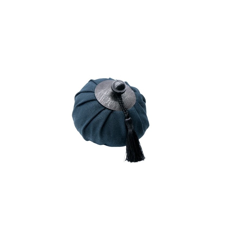 Shiny purse, decorated with an ornament in hammered brass and with a pompom, this sophisticated purse contains perfumed volcanic stones.