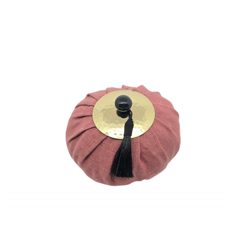 Velvet purse, decorated with an ornament in hammered brass and with a pompom, this sophisticated purse contains perfumed volcanic stones.