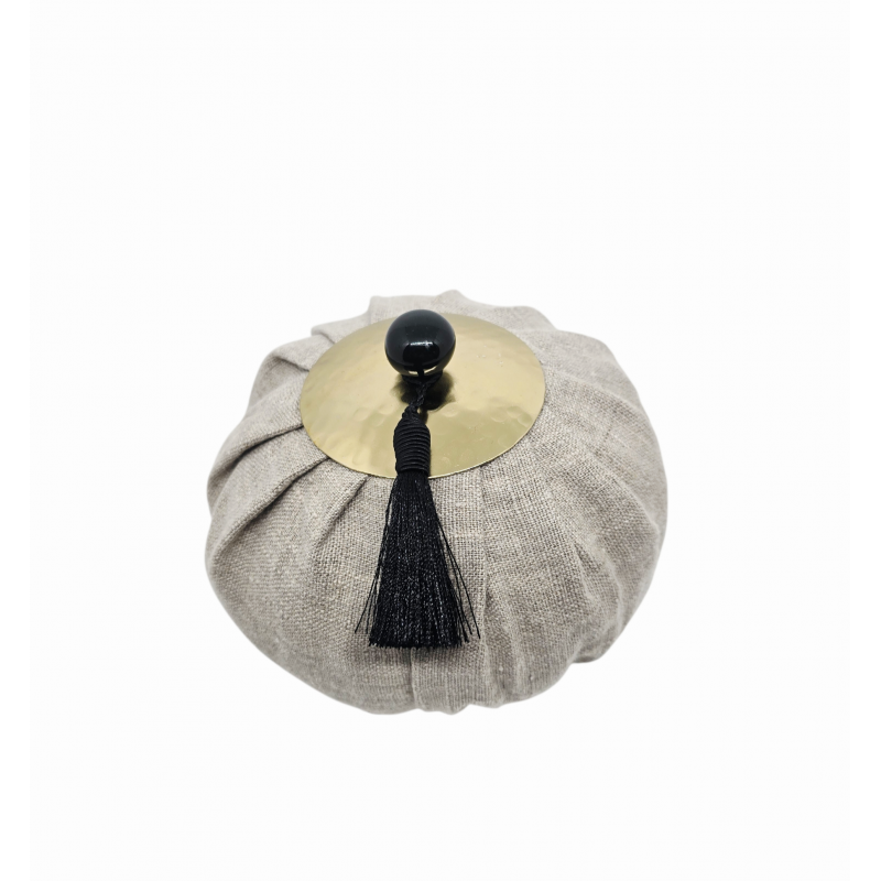 Velvet purse, decorated with an ornament in hammered brass and with a pompom, this sophisticated purse contains perfumed volcanic stones.